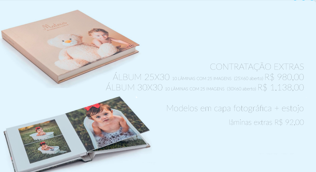 - Álbum (foto livro) impresso 20x60 (aberto) com até 45 imagens de sua escolha.